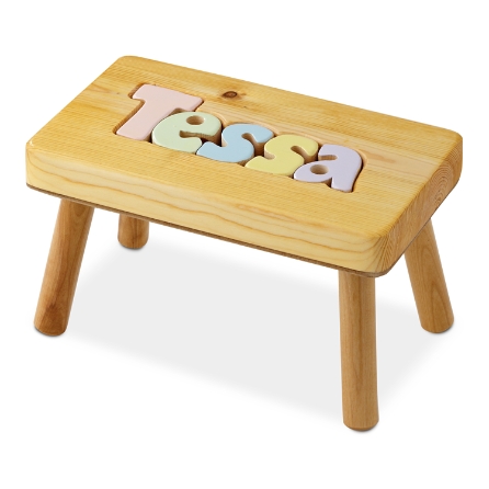 Personalized Stool Puzzles - Our puzzles and stools are all custom made with your child's name.. Damhorst toys & puzzles personalized wooden child's name puzzle stool primary. Help your little one step up high with our personalized step stool and learn how to spell his or her name with a personalized puzzle at the same time . Our wooden step stools help to teach them how to spell their name. Crafted with furniture grade birch veneer . Our collection of personalized wooden name puzzle stools is patterned after a jigsaw puzzle.